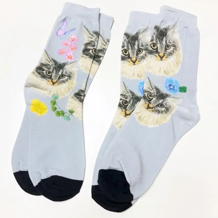 [손그림 오리지널] 사이베리안 고양이 삭스 양말 그레이 2족 세트
