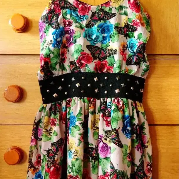 GLAD NEWS 장미 나비 스터드 원피스 락