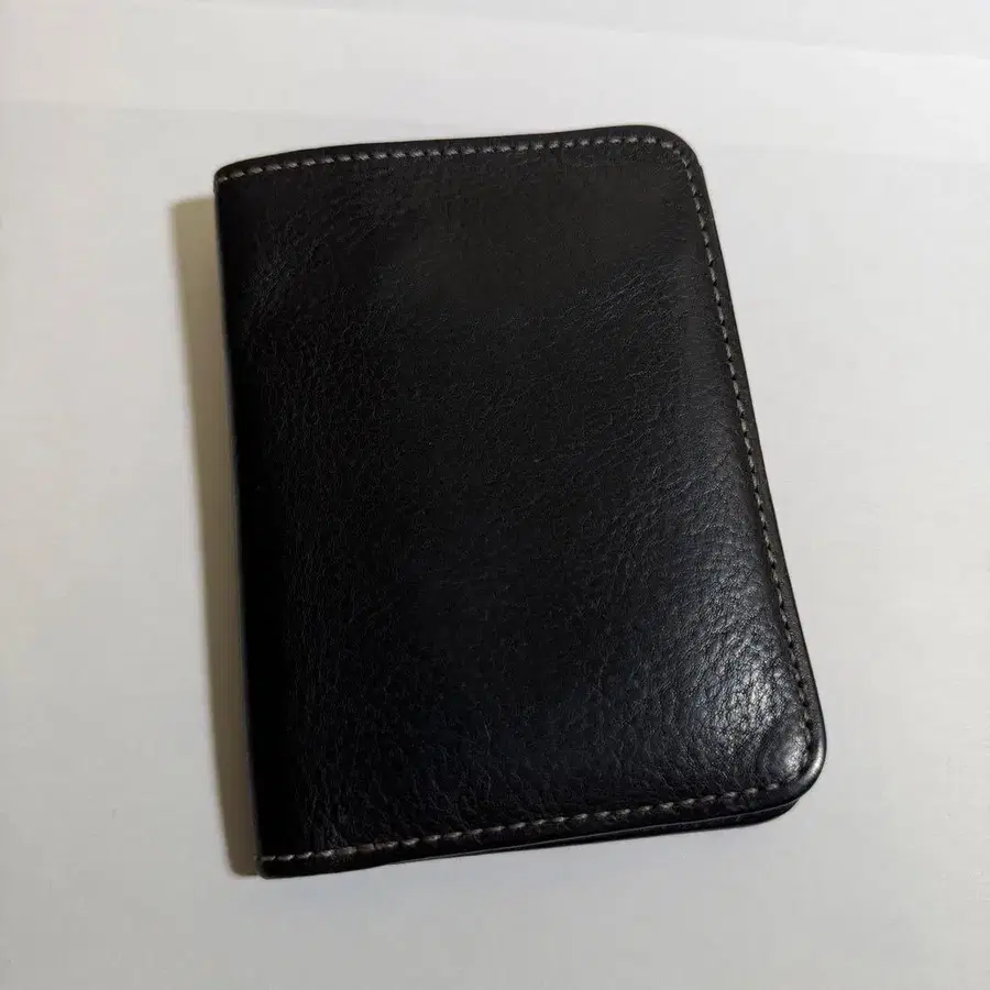 블랙 가죽 이단 접이식 지갑 메탈 버튼 포함