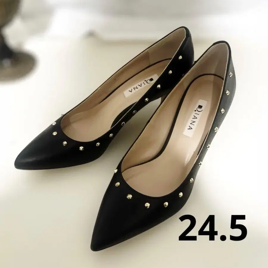 [컨디션 최상] 다이애나 블랙 스터드 스틸레토 펌프스 24.5