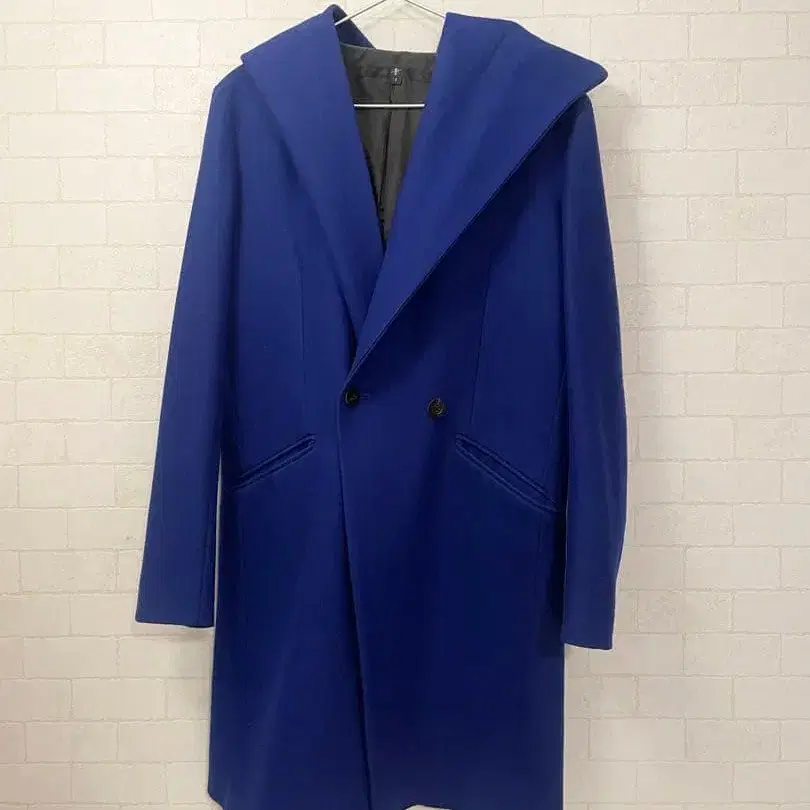 후드 부착 파랑 롱 체스터 코트