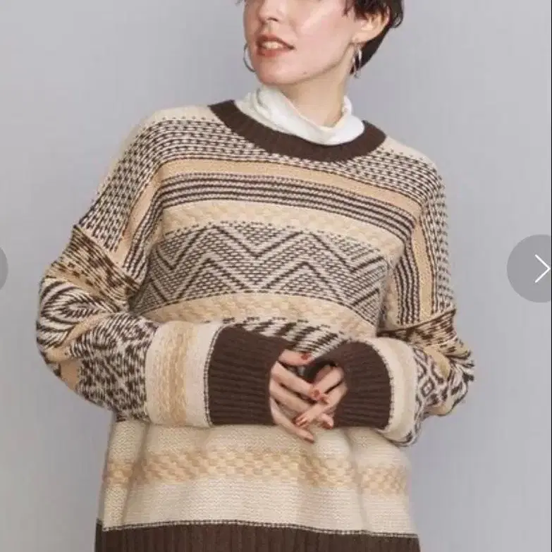 니트 특유의 보풀이 소매 밑단 부근에 약간 보이지만, 얼룩이나 찢김 등 큰 데미지는 보이지 않습니다.