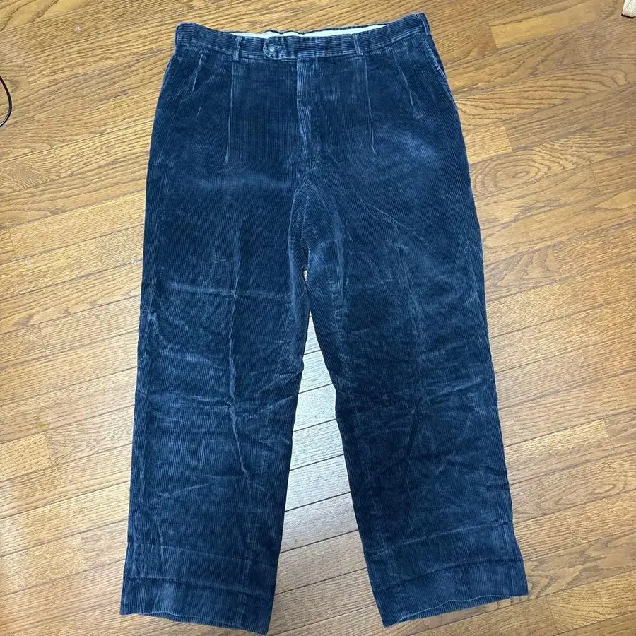 네이비 코듀로이 테이퍼드 팬츠