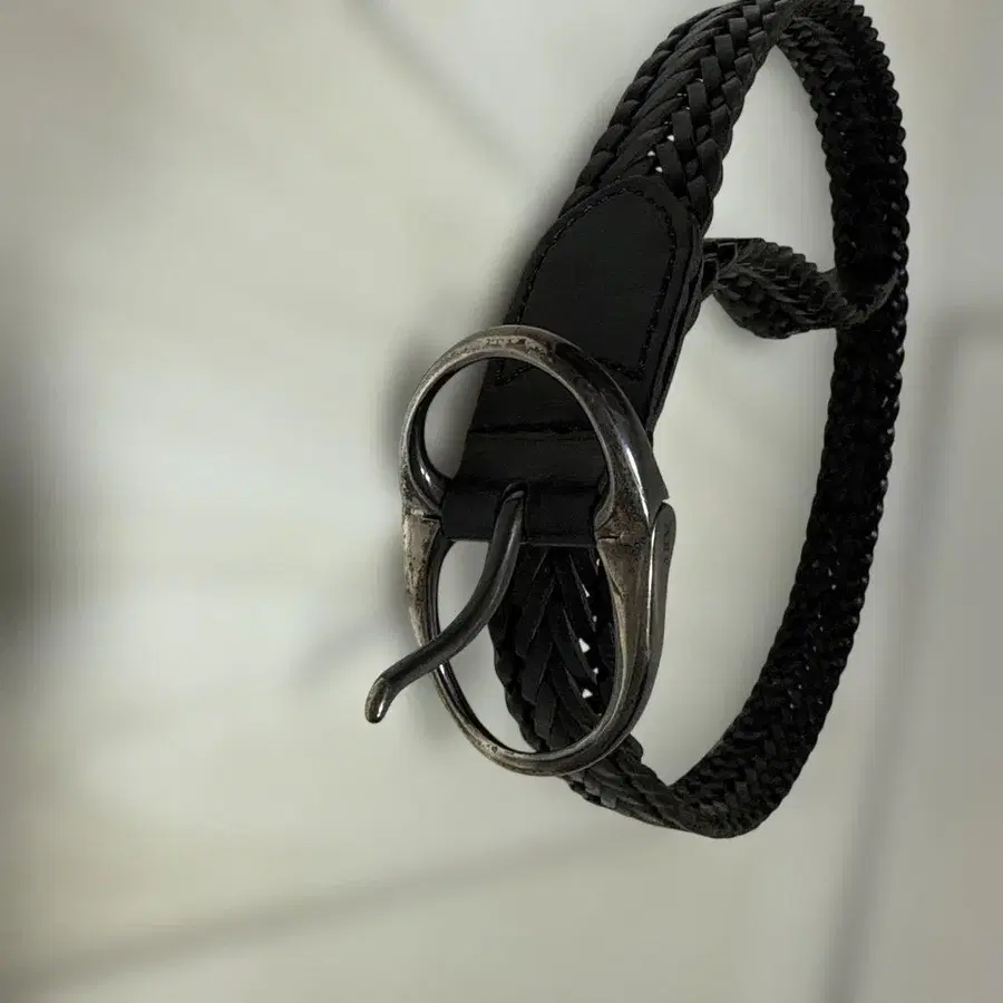 AKM 블랙 뜨개질 가죽 벨트 후크식 버클