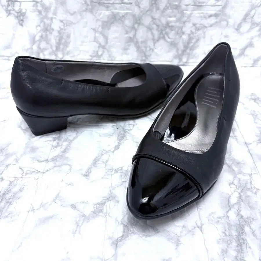 새상품급 fitfit 배색 스퀘어 힐 펌프스니커즈 (블랙) 23cm