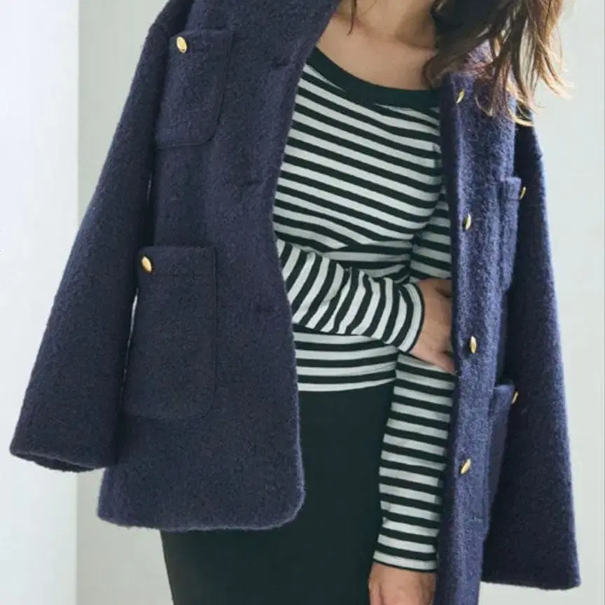 coca 푸들 금색 노카라 코트 네이비 S 새상품