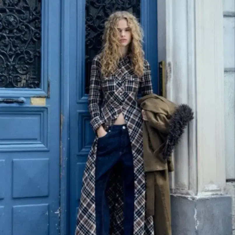 레어 택 포함 새상품 ZARA 체크 무늬 롱 셔츠 원피스