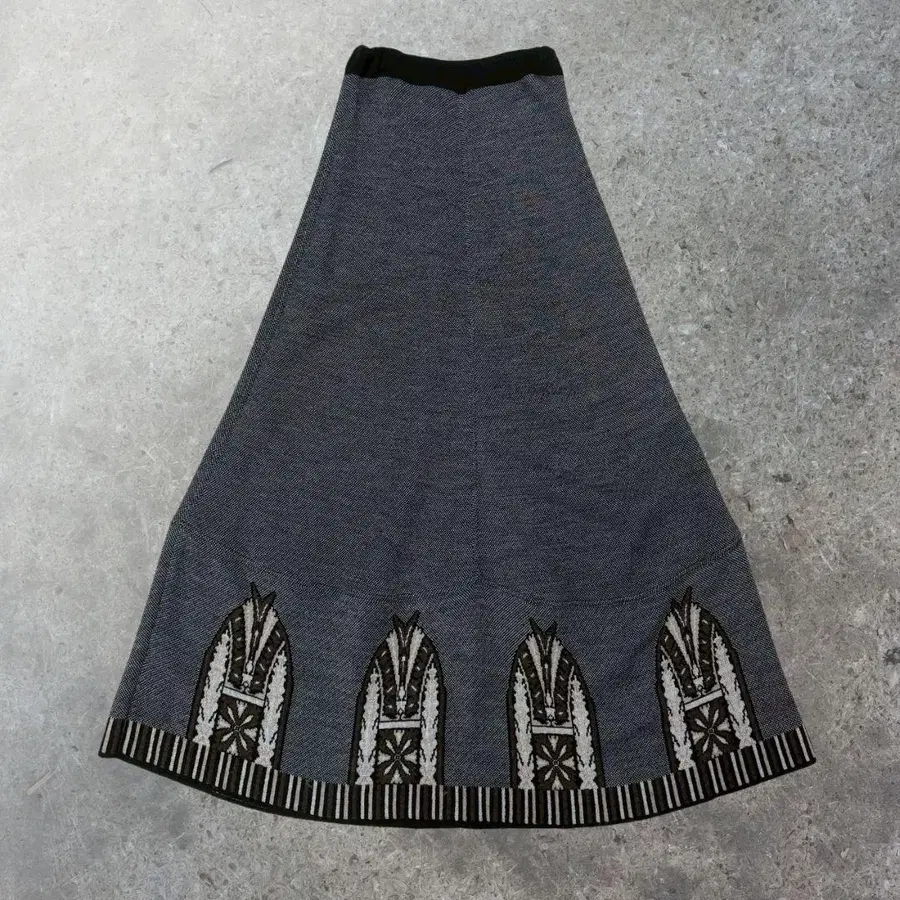 그레이 무지 본체에 밑단에는 아치형의 에스닉 패턴과 보더 라인이 들어간 디자인성이 높은 아이템입니다.