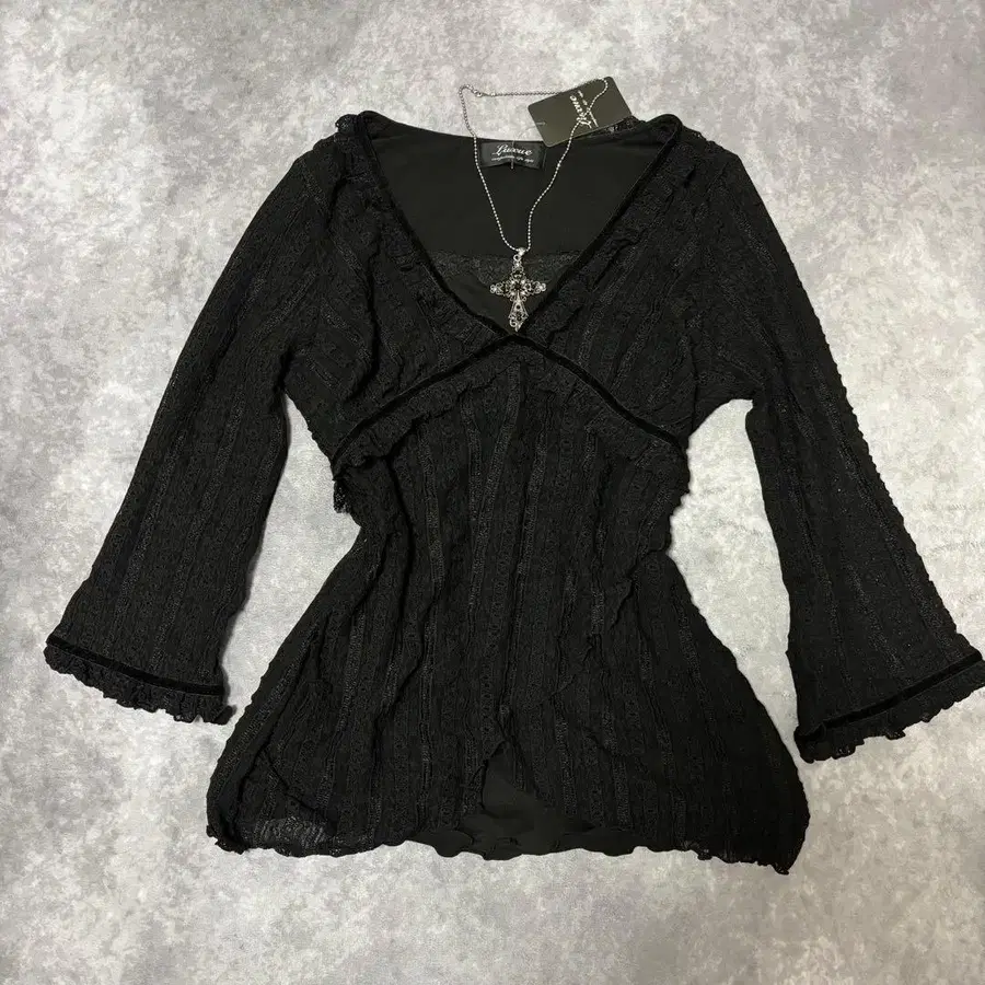 y2k 다크 코어 레이어드 스타일 레이스 티셔츠 벨로아 파이핑 고스