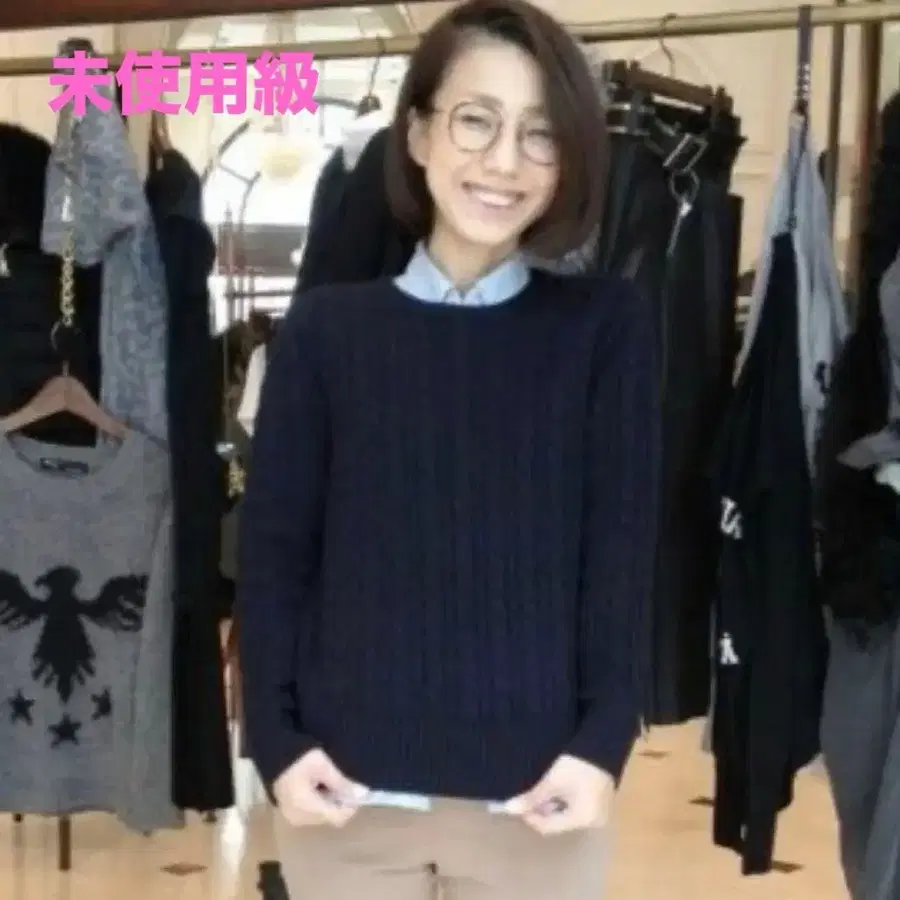 Deuxieme Classe 코튼 캐시미어 케이블 풀 니트 네이비
