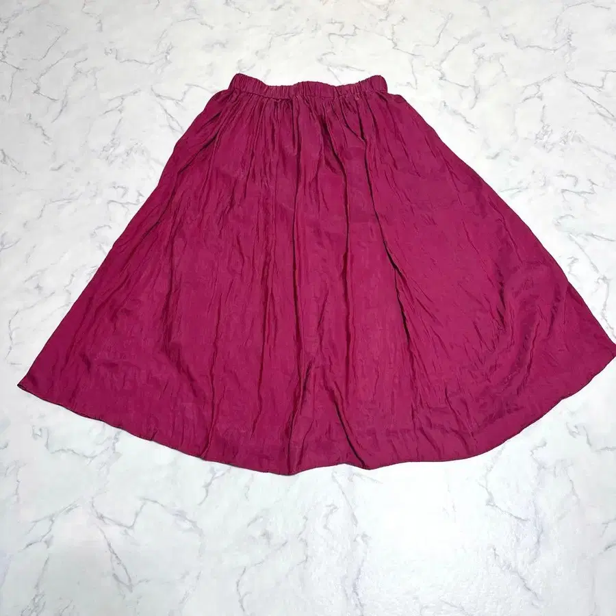 가벼운 마젠타 색상의 롱 스커트, 허리밴딩으로 편안한 착용감.