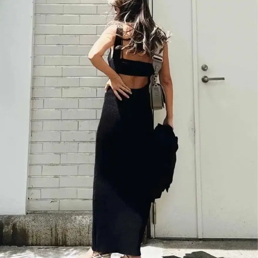 esutoreja*백 디자인 리브 드레스*니트 롱 원피스*블랙