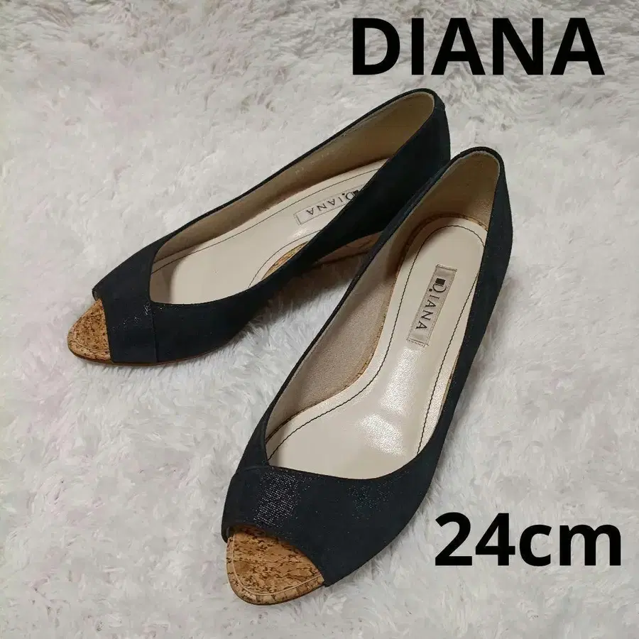 DIANA 네이비 오픈토 펌프스 웨지 24cm