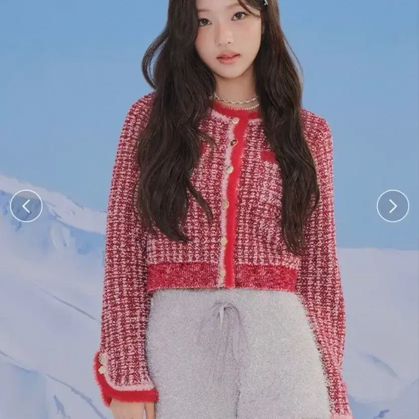 미사용 새상품 릴리 브라운 마리콴트 트위드 니트 자켓 RED