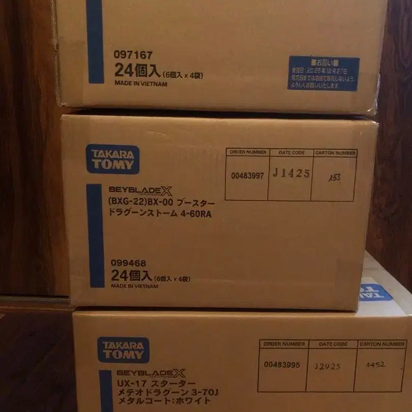 타카라토미 TAKARA TOMY BEYBLADE X UX-17 스타터 메테오 드라군 3-70J BX-00 부스터 드라군 스톰 4-60RA UX-18 랜덤 부스터 Vol.8 의 각 박스 1개씩 (6개입 x 4봉) 총 72개 분의 판매입니다. 미개봉 새상품이지만 외부 박스에는 운송 시 생긴 약간의 손상이 있습니다. 박스를 에어캡으로 감싼 후 한 치수 큰 종이상자에 넣어, 유유 메루카리 택배로 발송합니다. 블레이드의 메탈을 외곽에 많이 배분하여 고유 성능에 특화된 유니크 라인의 왼쪽 회전 베이블레이드. 그립 부분이 대형으로 잡기 쉬운 드래곤 와인더와 와인더 런처 L 동봉의 스타터. 왼쪽 회전 대형 러버 날을 갖춘 블레이드와 공격에 뛰어난 부품의 조합으로, 오른쪽 회전 상대의 회전을 흡수하여 여러 번 강력한 일격을 가하는 데 뛰어난 베이블레이드. [폭전슛 베이블레이드]의 드라군 스톰이 베이블레이드 엑스 Ver.으로 등장. 왼쪽 회전 공격에 특화된 블레이드에 러버 축의 비트를 조합하여, 오른쪽 회전 베이블레이드와는 역궤도의 고속 공격을 실현하는 베이블레이드. 특별 색상으로 커스터마이즈된 6종류의 베이블레이드 중 어느 하나가 들어있는 랜덤 부스터. 레어인 [마미 카스 7-55W]는 회전 속도에 따라 카운터 폼에서 가드 폼으로 전환되어, 배틀 초반과 종반에 다른 방어 성능을 발휘하는 베이블레이드. ※ 이 제품으로 놀기 위해서는 별도 판매의 베이블레이드 엑스 시리즈 전용 스타디움이 필요합니다.