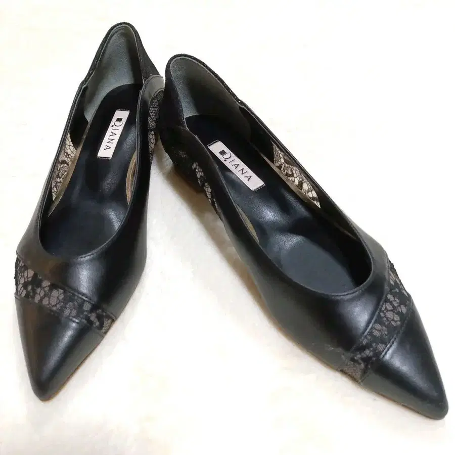 [DIANA] 플랫 펌프스 스틸레토 블랙 레이스 가죽