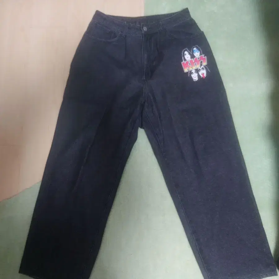 Perushu KISS 프린트 블랙 데님