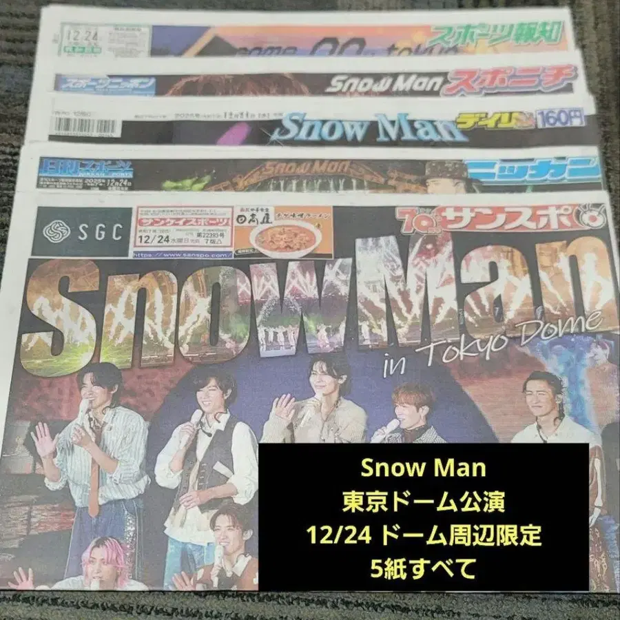 자동 번역되었어요. 원문보기Snow Man Dome Tour 2025-2026 ON 도쿄돔 공연의 모습을 전면에 게재한, 12월 24일자 SnowMan 특별 전면 신문 5개 신문 세트입니다.