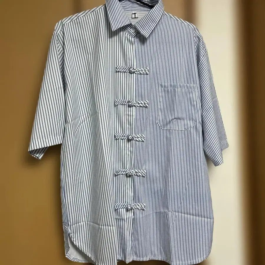 스트라이프 반팔 버튼 셔츠 L 사이즈 차이나복