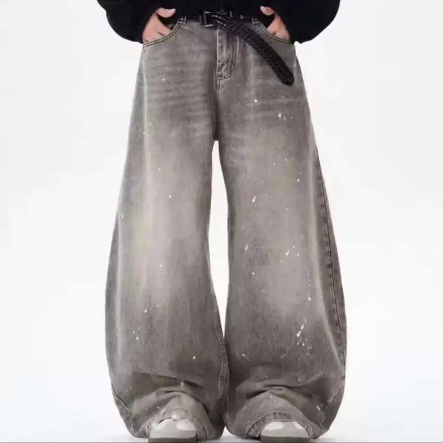 선착순 지하인풍 geek 페인트 가공 그레이 와이드 레그 데님 팬츠