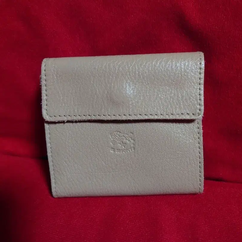 일비종떼 베이지 가죽 이단 접이식 지갑