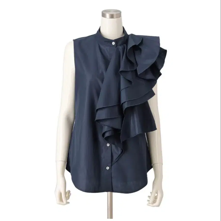 [ 새상품 ] 프릴 달린 슬리브리스 셔츠 네이비