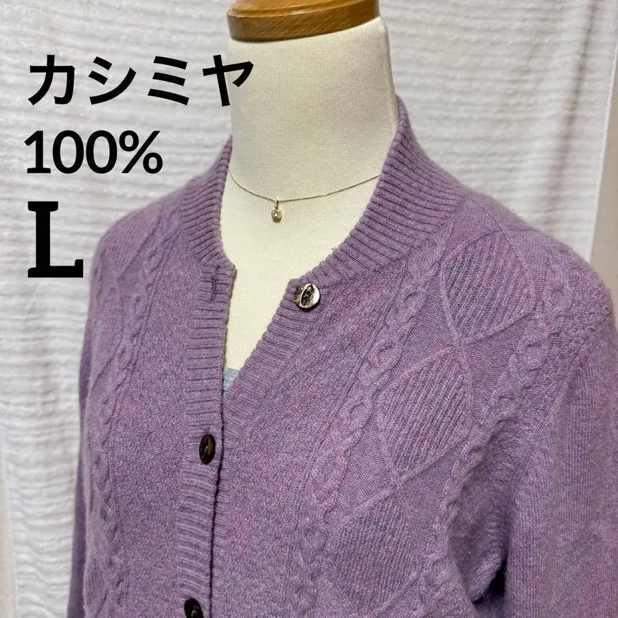 캐시미어 100% 라벤더 케이블 니트 가디건 보라색 핑크 L