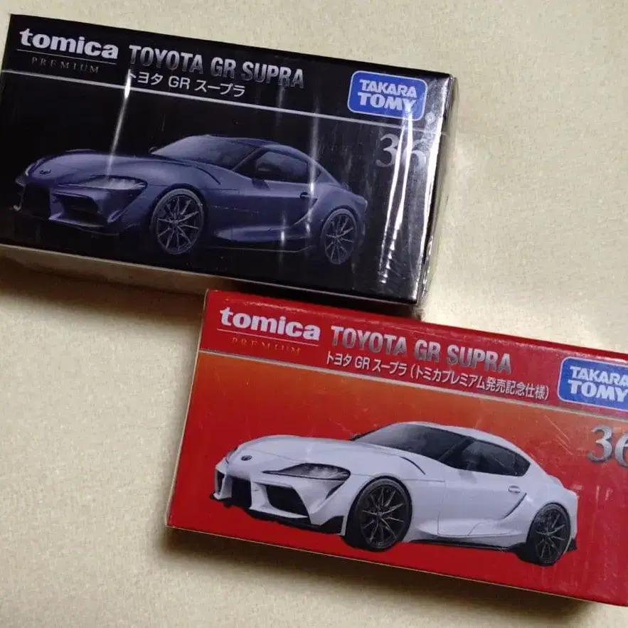 토미카 프리미엄 No.36 도요타 GR 수프라 화이트와 건메탈 2대 세트