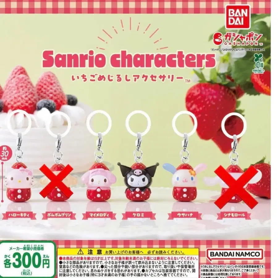산리오 딸기 메지루시 액세서리 키티 쿠로미 마이멜로디 우사하나 세트