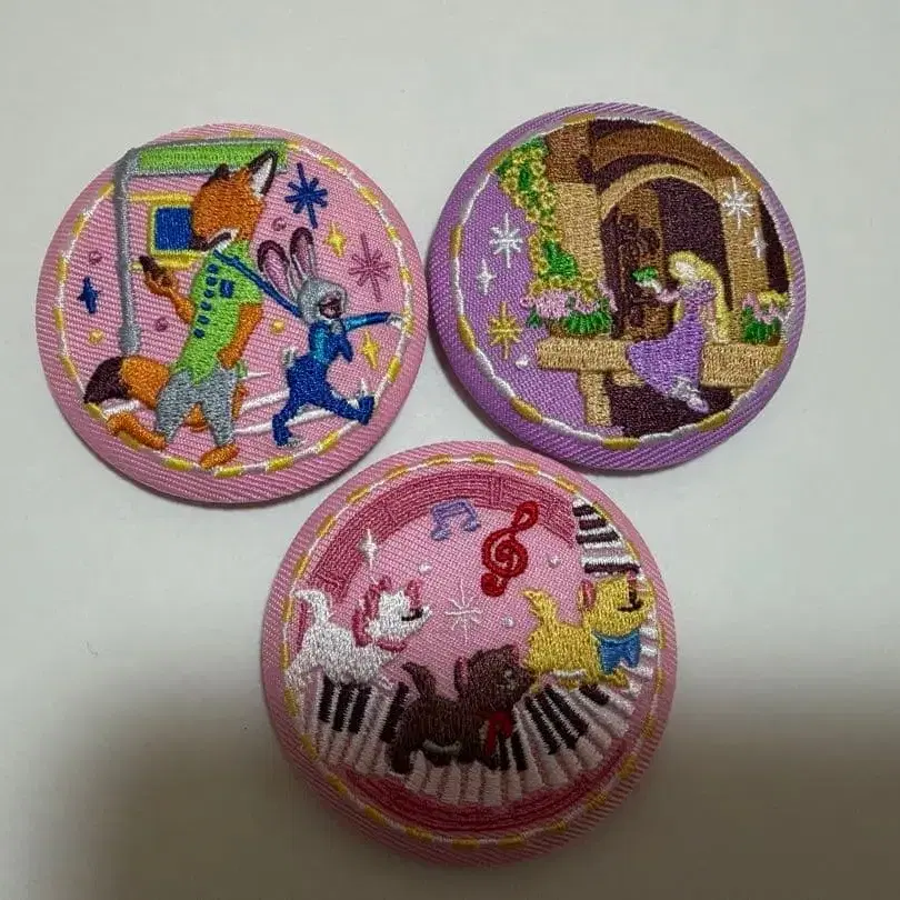디즈니 자수 캔뱃지 주토피아 라푼젤 아리스토캣 3개 세트