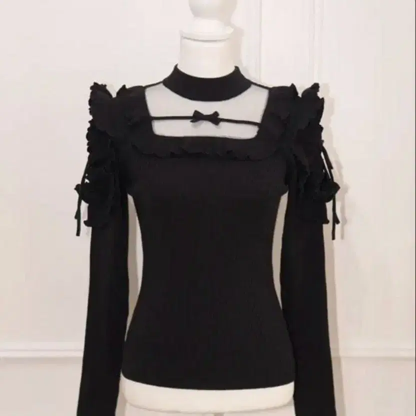 meltie 반짝이는 숄더 프릴 니트 블랙