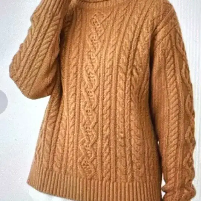 두지엠 클라세 알파카 혼방 케이블 짜임 터틀넥 니트 브라운