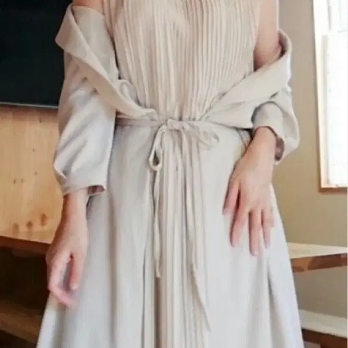 AMERI 프론트 플리츠 롱 드레스 원피스