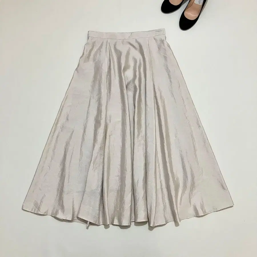 유나이티드 애로우즈 브라이트 플레어 스커트 베이지 L 경량 미세 광택
