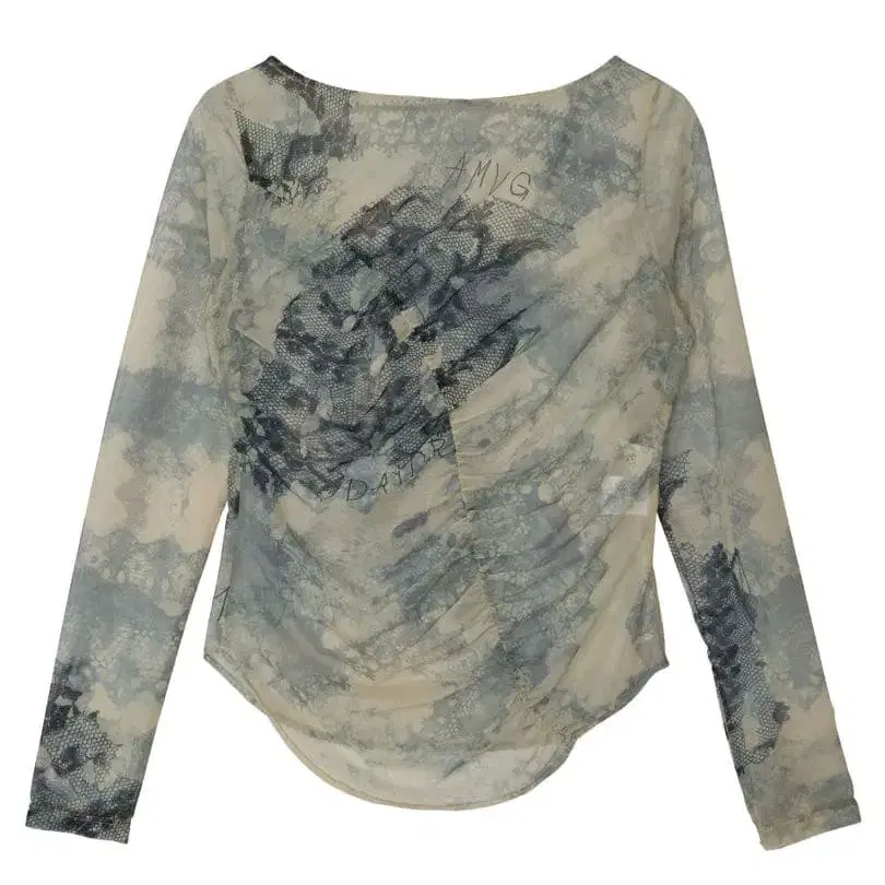 콜라주한 빈티지 레이스 패턴을 프린트한 시어 탑입니다.