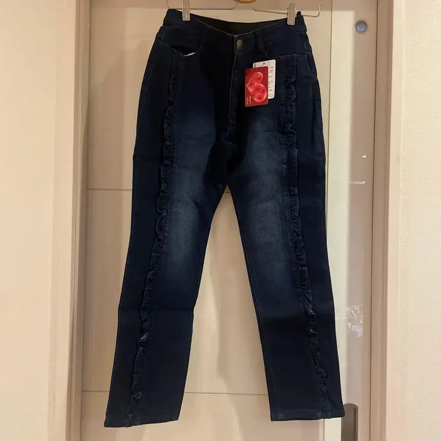 &LOVE 따뜻한 속기모 프릴 보이프렌드 데님 팬츠 네이비 M