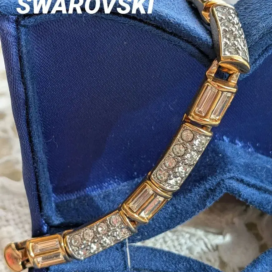 SWAROVSKI 골드 컬러 클리어 크리스탈 스퀘어 팔찌