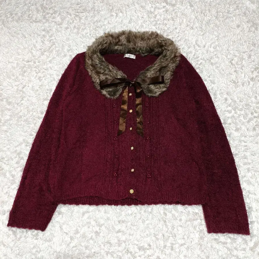 axes femme 퍼 리본 가디건 펄 버튼 걸리시