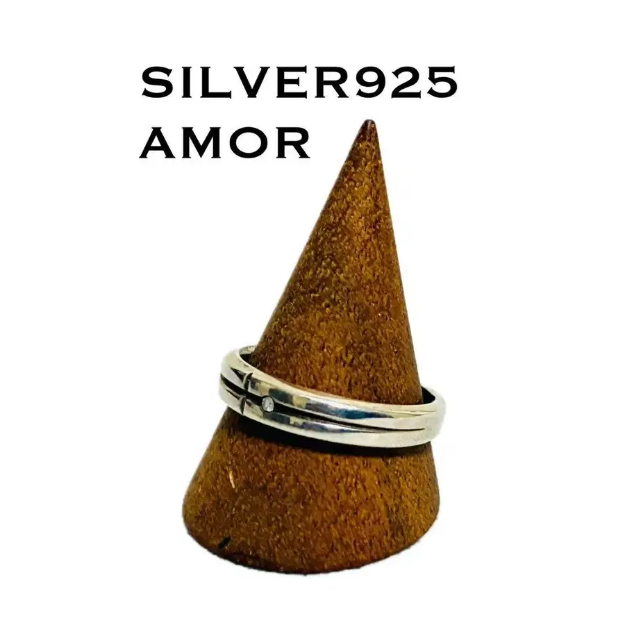 AMOR 실버 925 반지 지르코니아 크리스탈 심플한 디자인