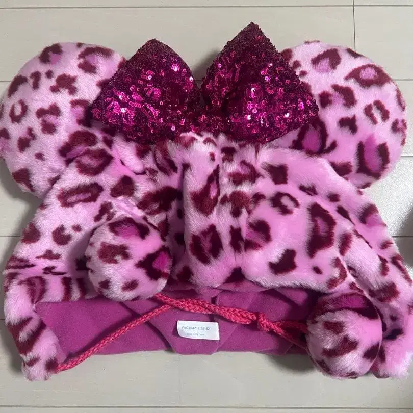 미니 귀도리 핑크 레오파드 무늬 캡
