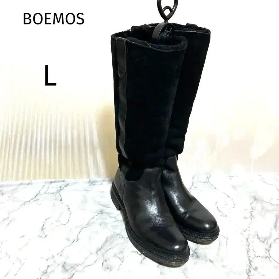 [ 보에모스 ] 가죽 스웨이드 롱 부츠 블랙 23.5cm 상당 L 사이즈