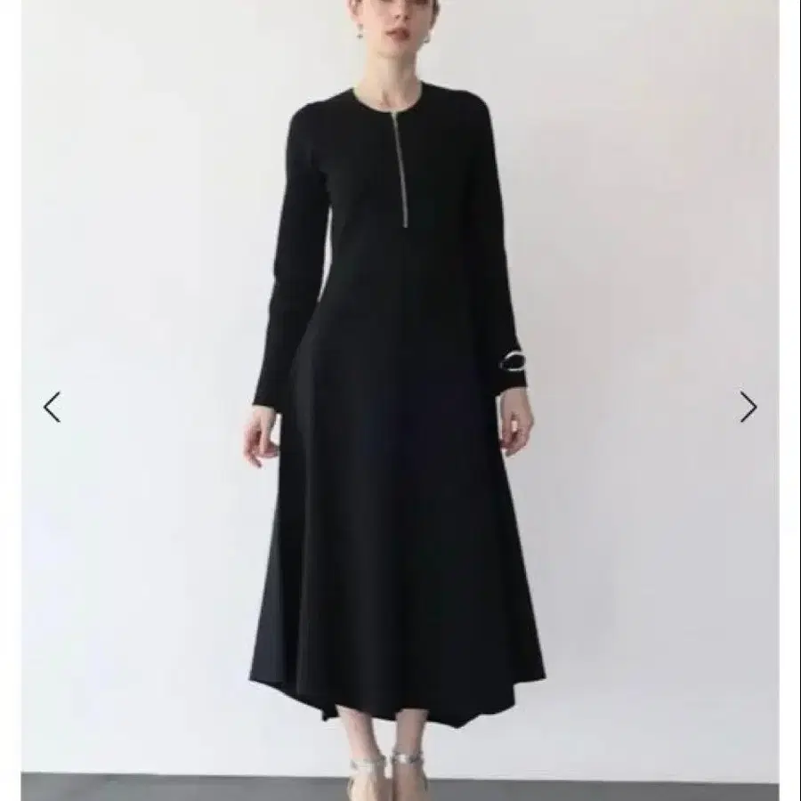 Aga Black 프론트 지퍼 A라인 니트 원피스 블랙
