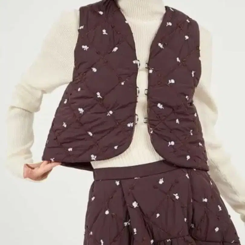새상품급 emmi 플라워 자수 퀼팅 베스트