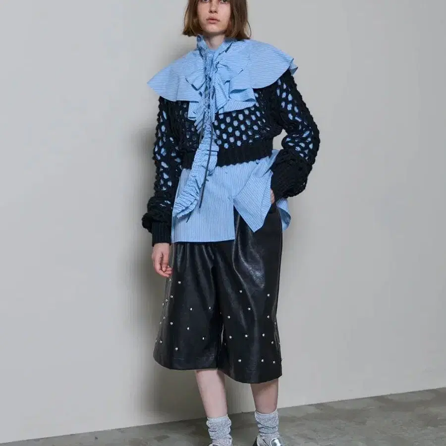 MAISON SPECIAL 스터드 가죽 숏팬츠