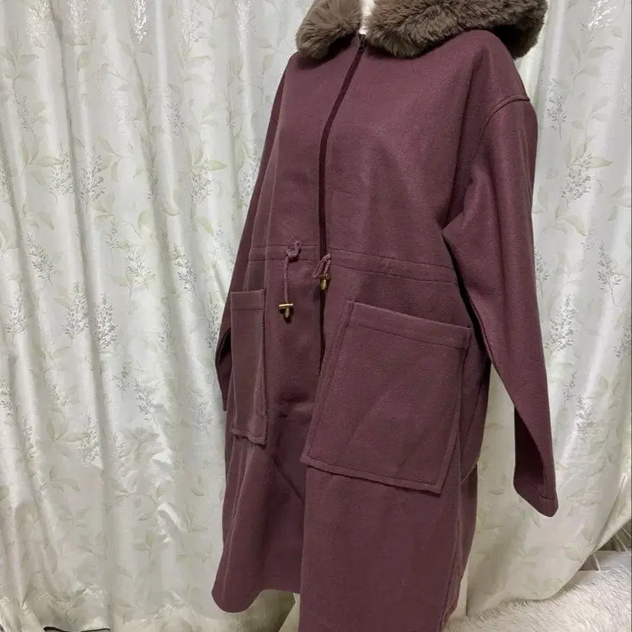 스마일랜드 빅 사이즈 와인 레드 후드 부착 롱 코트 6L
