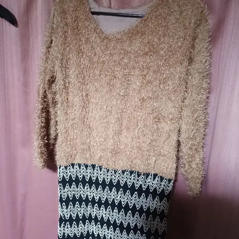 하나뿐인 enjoy 복슬복슬 베이지 샤기 모헤어 니트 긴팔 원피스