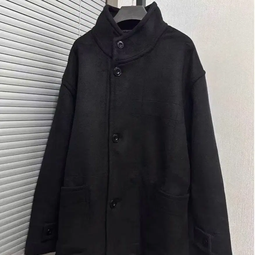 • 남성용 코트 블랙 스텐카라 코트 모 100%