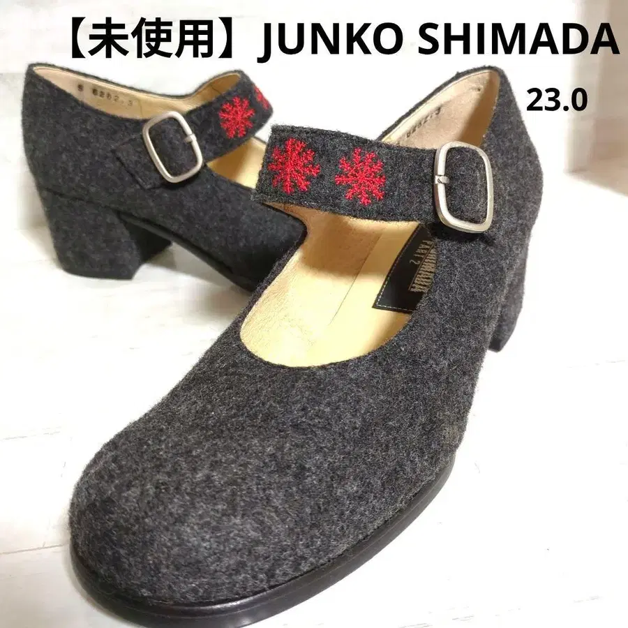 [ 미사용 ] JUNKO SHIMADA 울 그레이 하이힐 빨간색 자수