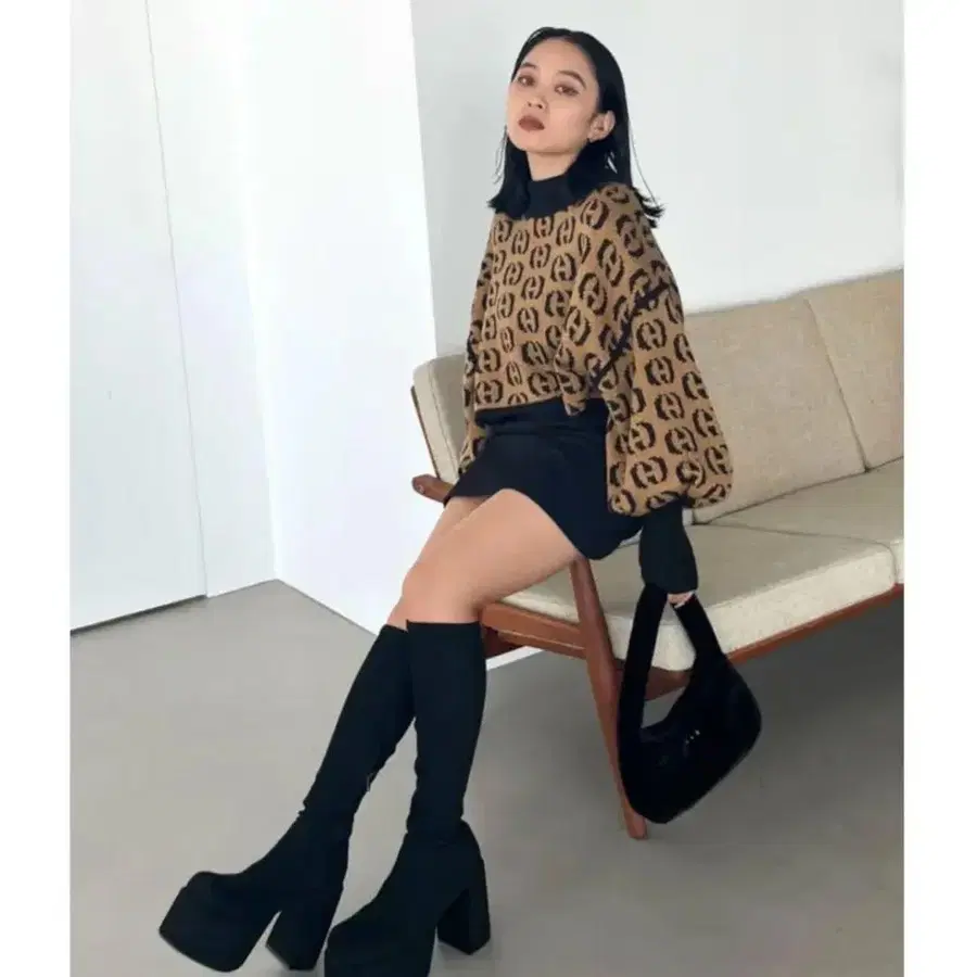 업 넥 볼륨 슬리브 니트입니다.