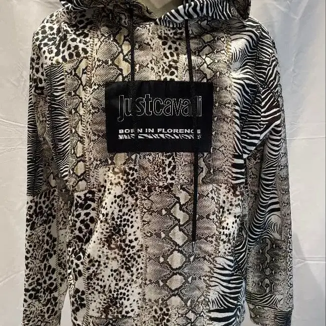이탈리아제 브랜드 Just Cavalli 애니멀 무늬 후드 부착 후드티